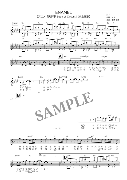 Enamel シド アニメ 黒執事 Book Of Circus Op主題歌 メロディー譜 コード 歌詞付き Mucome 音楽 楽譜の投稿ダウンロードサイト